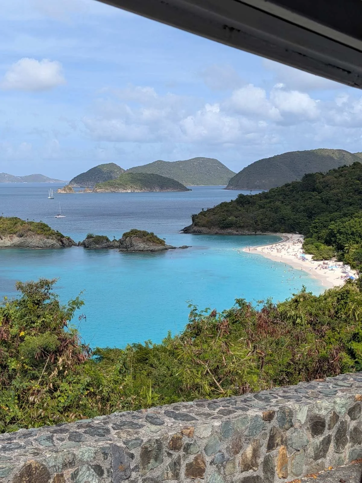We took a ferry to Trunk Bay, and it was one of the most beautiful beaches we’ve ever seen. Crystal‑clear water, soft sand, and that perfect Caribbean stillness.